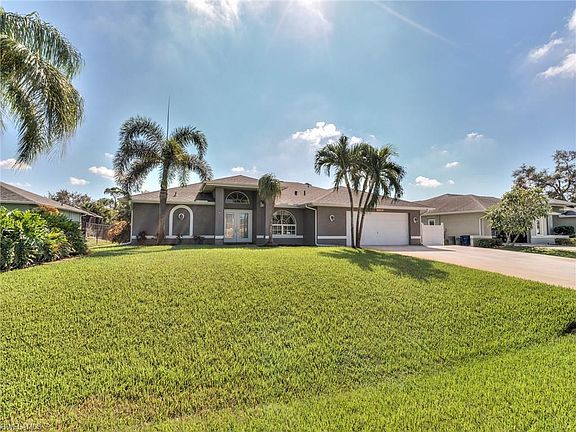 One of San Carlos finest! This 3 bed w/flexspaces, 2 bath pool home is one of the nicest in the neighborhood. Lawn is lush and green, with automatic sprinkler system. Entering this property you are greeted with double french doors looking out to the screened in pool and lanai area. Wood flooring throughout with tile in baths. The two front rooms are flexible in their use. Kitchen is amazing, with storage everywhere including in the very large island and the coffee/entertainment bar area, and open up to a large living area. Secondary bedrooms both have walk in closets, and are bright and welcoming. New A/C just installed. New hot water, water treatment system just serviced, and whole interior has been repainted including all the trim. This home is a great layout, with many spaces for entertaining, working, playing, and relaxing! Home has been well taken care of and it shows! If you are looking for a great family home, this is it! Dont wait!