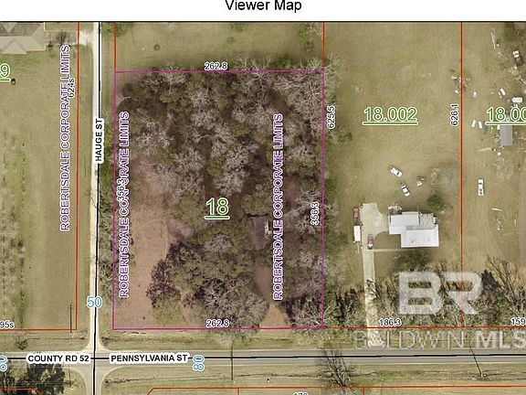 Prime 2 acres, with beautiful hardwoods and flowering shrubs, original homestead built in 1939 of Stucco/Brick, is no longer inhabitable, (would require extensive renovation, or possible removal). Corner Lot Hwy 52 and Hauge Road. Near the Robertsdale Sports complex and County offices. Exceptional investment opportunity, or a gem of a lot for a new home build. SEE AGENT REMARKS FOR SPECIAL INSTRUCTIONS TO SHOW