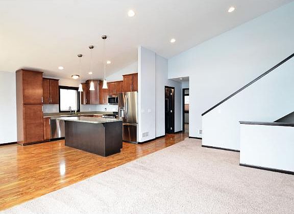 MUST SEE! House was designed to maximize living on the lake with scenic views from the house, 70 feet of sandy south facing shoreline, and walkout basement. Luxurious master suite: lake side bed & bath, large walk-in closet, walk-in dual shower. Oversized 2 car garage. All the amenities/perks of new construction in a desirable & established community. One block to downtown express bus. Entertainment, parks, and shops minutes away. Top rated schools & community.