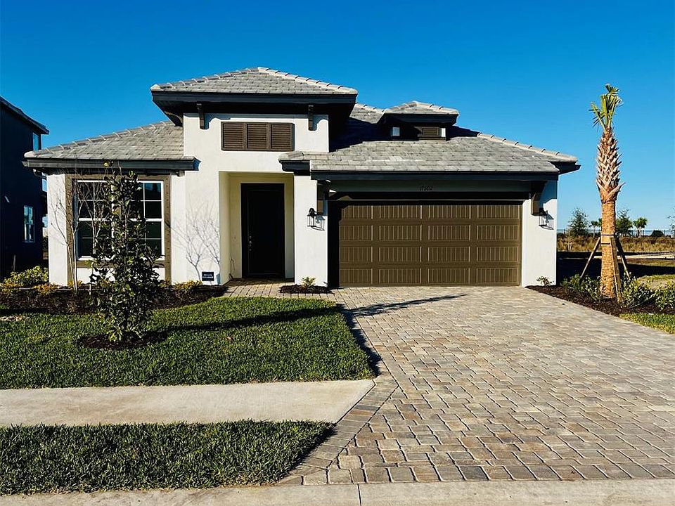 Explore the inviting community of Sweetwater at Lakewood Ranch, where the Calusa A floor plan seamlessly combines style and functionality. This open floor plan features 4 bedrooms, 3 full bathrooms, an extended covered lanai, and a convenient two-car garage. Sweetwater at Lakewood Ranch offers an unparalleled lifestyle with resort-style amenities, including a pool, playground, multi-purpose sport court, pickleball courts, and a festival lawn with an amphitheater. The custom-designed community center includes a 24-hour fitness room, café, and social hall, creating a vibrant and engaging community experience. Step into the pinnacle of luxury living at Sweetwater!