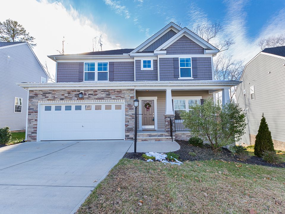 This beautiful 2-story Craftsman has exquisite exterior details that match the equally wonderful interior. The home opens to a formal sitting area with double windows that let in tons of light. It's connected to a dining area that includes crown molding and hardwood floors that continue into the rest of the open concept first floor. The living area offers plenty of space and a gas stone fireplace and wooden mantle. The kitchen boasts dark stained cabinetry, pendant lighting over a large island with bar seating, granite counters, stainless steel appliances, double ovens, and separate pantry. Upstairs, there's a second living area with great views out of the back of the home. The master bedroom is huge and features a large master bathroom with double sinks, a separate vanity, a soaking tub, and a separate shower. Two more well-sized bedrooms and a full bathroom with double sinks round out the 2nd floor. Other notables include an attached two car garage, a 1st floor half bathroom, 2nd story laundry room, spacious back deck and wonderful view of the green at the 18th hole. Schedule your showing today!