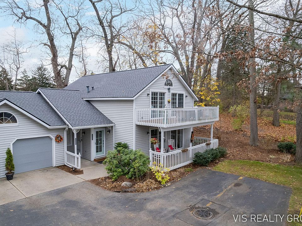 This gorgeous Spring Lake condo with boat slip is a must see! With 2 large bedrooms and a full bath this is the perfect down size or vacation get-a-way. You will find in-unit laundry, vaulted ceilings and two sliders that walk out to a beautiful deck with water views of Spring Lake and the bike path, private views with mature trees are offered in the rear yard facing the golf course at the Spring Lake Country Club. Dock #4 is just across the street ready for your boat next summer. Sunset Cove is pet friendly with association permission and dues include lawn care, water, snow and all exterior maintenance. This unit has a newer roof, furnace, refrigerator, dishwasher, microwave, washer and dryer and in the shared basement area and two dedicated parking spots.You don't want to miss this one Call today for your private showing.