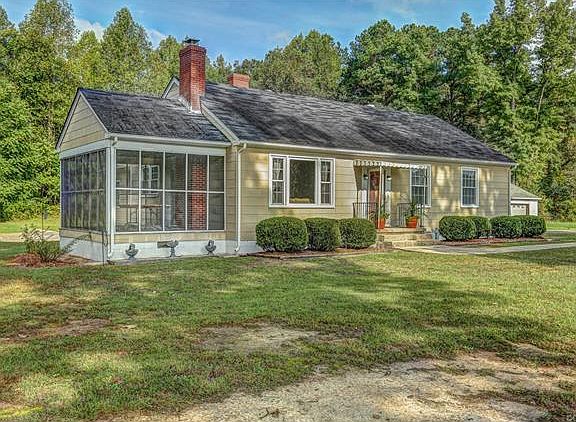 What a doll house!! Old charm and first floor living!! Warm family room with brick-wood burning fireplace, beautiful picture window, hardwood floors, access to large screened porch, freshly painted retro kitchen with new linoleum and built in glass cabinet, dining room big enough to have a thanksgiving feast, master suite added with extra large walk in closet, new windows, new drain field, new paint, new carpet, wood doors and amazing extra wide baseboard and updated bathroom that just sparkles! 2nd bathroom as been started but currently used as storage area. 1 door detached garage has plenty of space and could easily be converted to 2 car. 32 x 50 carport for your boat! Beautiful 2.14 acre lot convenient to everything! Run, don't walk to see this one!!