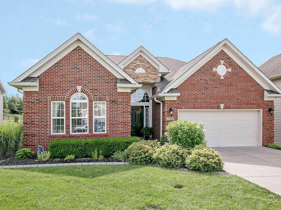 UPDATED WHITE KITCHEN CABINETS, NEW CARPET! Beautiful ALL brick ranch, one owner, and formerly used as the model home. This home boasts over 4,000 sq.ft. with open floor plan and 11' ceilings! The main floor features 3 bedrooms (1 currently used as an office), a sun room with new carpet, dining room, laundry, eat-in kitchen, and two full bathrooms. The master bedroom has a large en-suite with walk-in closet. In the kitchen you will find granite counters and stainless steel appliances. FP and built-in cabinetry in GR. Entertainment area galore in the lower level. You will find the 4th bedroom and 3rd bath in the basement as well as a built-in bar and wine rack with granite. Two additional finished bonus rooms and 2 storage areas complete the basement. Seller providing First American 1 yr Home Warranty. Don't miss out on this beautiful home!