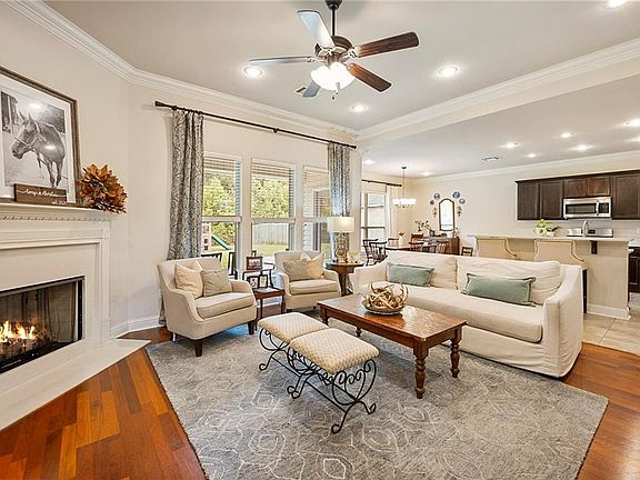 Beautiful single-story home in Oak Ridge Estates. This one owner property on an oversized lot offers an open floor plan with many upgrades. The 3-bedroom 2 bath home provides ease of entertaining with the open plan yet still offers privacy for the primary suite. The living space flows effortlessly to the dining area and kitchen and then to the rear patio and yard. The living area has hardwood floors, crown molding, high ceilings, a wall of windows and a fireplace. The kitchen has stainless steel appliances, quartz counters, center island and a pantry. The primary suite has hardwood floors, primary bath with dual vanities, soaking tub, separate shower and a walk-in closet. The rear patio and yard has a TV mount, gas hookup for outdoor cooking, fruit trees, and is large enough for a pool. The ample storage includes closets in the foyer, hall, and laundry room. Additional storage options in the home include floored attic space and a 2 car garage. Energy upgrades include tankless water heater and double insulated windows. Flood Zone X