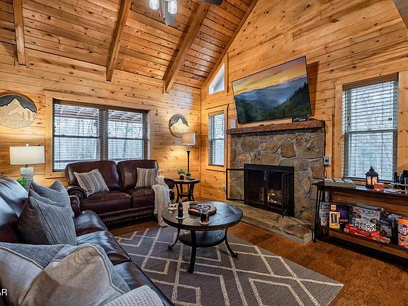 This fully remodeled 2BD/2BA cabin is the perfect blend of style, comfort, and cash flow—grossing $95,404 in 2024! With a 4.94-star Airbnb rating, guests consistently rave about the thoughtful touches and top-tier amenities. Step inside to find modern updates throughout, including a cozy rock gas fireplace, fast WiFi, and designer finishes that elevate the guest experience. Both bedrooms feature king beds, with a luxurious primary suite offering an ensuite bath and double vanity. Upstairs, the spacious loft is packed with fun—two twin XL trundles, pool table, and two arcades that keep families coming back.