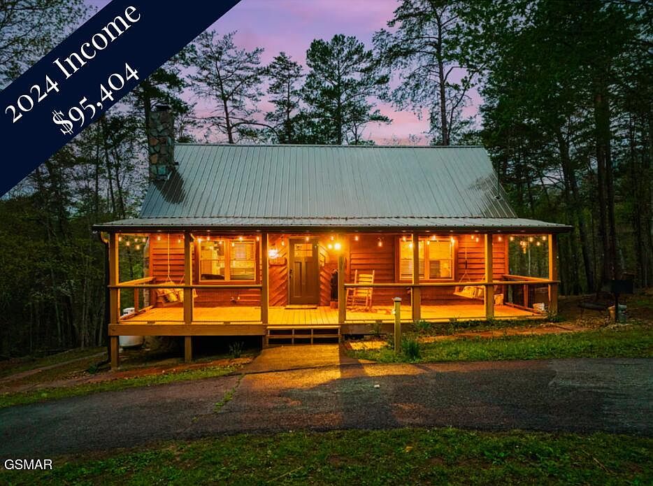 Outdoors, this cabin continues to shine with two covered decks—one featuring the hot tub and outdoor seating, the other with classic front porch swings perfect for your morning coffee. A large 0.76-acre lot offers room for expansion or added amenities, and the fire pit area with seasonal mountain views makes evenings unforgettable. Guests love the nearly step-free entry, making it a convenient option for those with mobility needs. Add a durable metal roof that is just 6 years old, great location just 15 minutes from Pigeon Forge, and sleeping space for 8, and you've got an income-producing powerhouse ready to go.