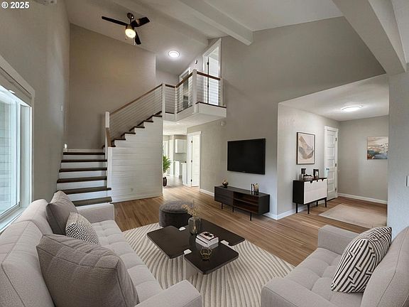 LOCATION. LOCATION. LOCATION. Cute Updated Bungalow just 300yds from West Linn's Historic Willamette District. Brand New Flooring Throughout with Lakeside Oak LVP and Trendy Patterned Carpet. Living Room Features Vaulted Ceiling and Natural Light. White Shaker Cabinetry, Quartz Countertops and Stainless Appliances in the Kitchen with Adjacent Dining Area and Patio Access. Modern Cable Railing Staircase. Layout Features Two Bedrooms Upstairs with Remodeled Full Bathroom, and 3rd Bedroom or Office Located on Main Level with Half-Bath Across from Laundry Room. New Roof, Heat Pump/AC, Hot Water Heater in 2021. MASSIVE Fenced Backyard with Tool Shed. Freshly Seeded Front Yard. Extra Tall Garage with Connected Shop area. **REQUEST TO SEE HISTORY/REHAB DISCLOSURE FROM YOUR AGENT**