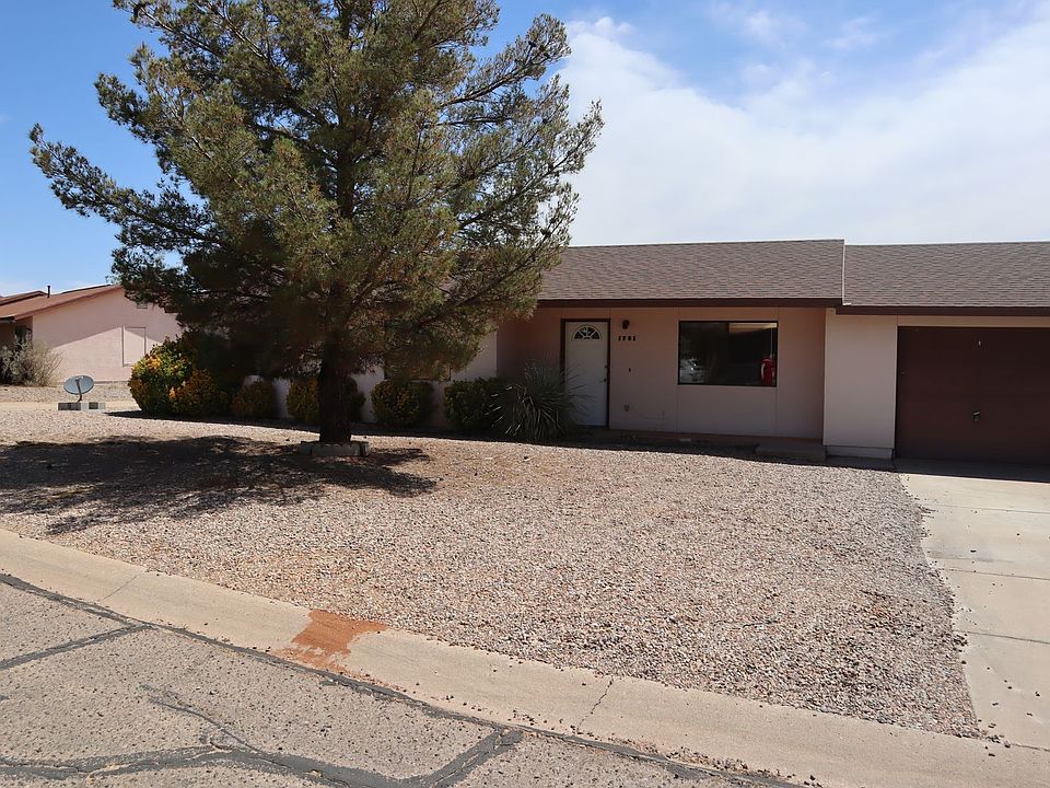 Welcome to the stunning home in Sierra Vista, AZ that you have to see to believe! This 3 bedroom, 2 bathroom home boasts a range of amenities that will make you feel right at home. From the spacious kitchen with refrigerator, electric range, dishwasher, and built-in microwave, to the luxurious walk-in shower and relaxing bath tub, this house has it all. Enjoy the comfort of central air conditioning and ceiling fans throughout, as well as the convenience of a fenced backyard and large covered patio. With all tile floors and a 1 car garage, this home is perfect for anyone looking for a beautiful and functional living space. Don't miss out on this incredible opportunity Put this home at the top of your list to see! This The backyard is easy maintenance with mostly gravel and a block fence.