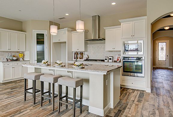 The beautiful arched front windows of the Pasatiempo provide for a unique feel that stands out from the rest. This plan offers a spacious kitchen with granite countertops and plenty of counter space overlooking a beautiful great room. The Pasatiempo is another customizable home in our traditional line. Choose either a three-bedroom home with a library or formal dining room, or select the four-bedroom option. Need an extra garage space? The Pasatiempo can be easily customized with a third, extended garage.