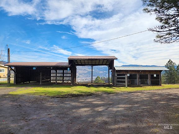 Estate Sale Manufactured home situated on 13.16 acres with panoramic views of the Clearwater Valley. Huge metal shop with wood stove tons of storage space. Additional out buildings for storage and parking. Dog kennels with own septic system. The property is totally fenced and set up for horses or mules. Plenty of space for additional farm animals. The home has 2 spacious bedrooms and two baths. Formal living room and formal dining. Family room has wood stove. Bright and cheery kitchen with a slider out to the 480 sq ft covered porch. Private well and septic system. Lots of privacy yet just a short drive to shopping schools and medical.