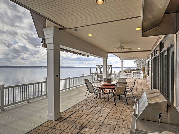 This year round home is built to the highest standards. No other property like it on Cayuga Lake! Located minutes from Aurora in the heart of finger lakes wine country, enjoy boating, fishing and more! 30 min to Ithaca, home to Cornell and Ithaca college. Unique flr plan affords privacy for a house full of family and friends. Great for entertaining w/2 kitchens and living areas, 187 ft of lake front, private yard, boat garage. Great rental history with repeat guests each year. Currently generating -$50K in annual rental income with potential for more! Ask agent about new buyer incentives.