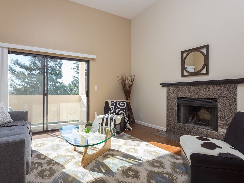 Live the good life in your immaculate, spacious, really secure single level 2 bedroom, 2 bath top-floor condo. One block from the El Cerrito Del Norte BART station on the San Francisco commute line and other public transportation. 905 square feet (aprx.) of living space per public records. Some features include a fully appointed kitchen with new granite counter tops, new designer cabinets and new pantry. The condo has neutral decor throughout with a fireplace, vaulted ceiling, an allergy friendly radiant heating system and a balcony patio off the living room. Since you are so close to BART, a new Safeway lifestyle store and dozens of other consumer retail stores, you may never need a car again. But just in case you have a car or two, there are 2 assigned secured parking spaces, 1 indoor and 1 outdoors. Opposite your unit is a large open roof deck with hill views, ready for your barbecue. There is a coin operated washer & dryer facility down the hall. The building is locked and secure and has an elevator for your convenience.