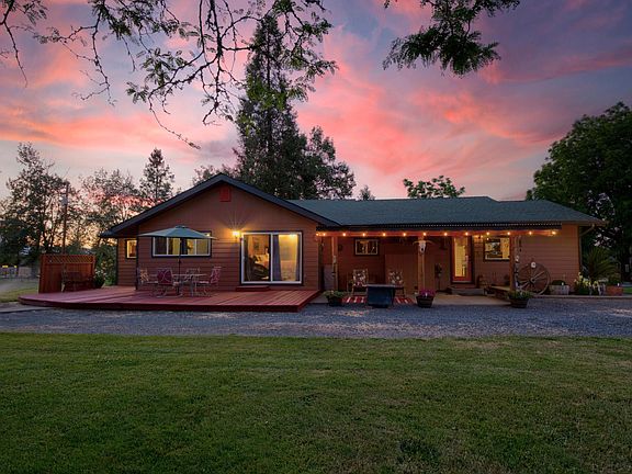 Live the Oregon dream at this beautiful, 5 acre, country horse ranch while less than 10 minutes from town & the majestic Rogue River! She's fenced & cross-fenced with a 4-stall horse-barn with hay loft, tack room, huge shop, corrals, riding arena, lots of irrigated pasture plus a lush, private forest just across the irrigation canal. Pride of ownership abounds. Updates include a spa-like bath with tile shower & jetted soaking tub, vinyl windows, laminate & tile floors, a recent roof replacement & a brand new roof on the barn in 2020. Fire up a pot of hot cider in the charming, country kitchen with spacious walk-in pantry. An efficient, ductless, mini-split heat pump & window air unit keep the place nice and cool in the summer. And what ranch home would be complete without a roomy mud / laundry room? And how about a game of horseshoes? Then relax with that hot mug of cider on the covered patio while taking stock of your ranch and livestock beyond. Call for a look inside today!