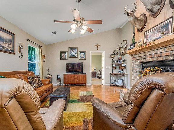 Cute country home on 5 acres surrounded by peace and quiet. This home has so much to offer any family! You will feel welcome and at home as soon as you enter into the front door. The living room greets you with a gas fireplace with brick and wood accents. The kitchen is ready for the cook in your family you will find an oversized gas stove, a breakfast bar the children will enjoy sitting at to complete their schoolwork, and extra room for added guests. The dining room can double as an office, extra media room, or nursery - it is located just off the kitchen with double french doors so it can be as private or open to suite your family's needs. No hurricane worries here, this home has a whole house generator included!!! The exterior of this home boast a beautiful screened in back porch, gas stub out for your outdoor grill, an oversized 2 car carport with built in storage area, lawn irrigation system, 5 full acres of privacy, detached shed for storage, and a detached covered area for your toys - atv's, boat, tractors!! you name it.. This home has everything a family could want or need!