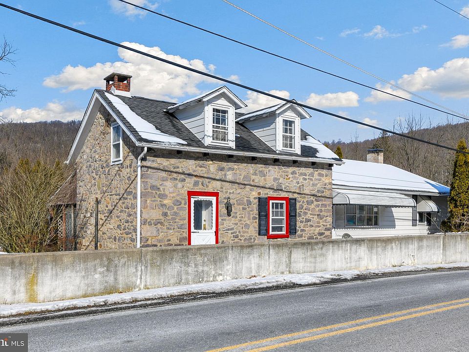 Multiple offers-Charming 1850's Stone farmhouse situated on 2.43 beautiful acres. Main floor has plenty of space, a huge eat in kitchen complete with a huge fireplace, original summer kitchen, spacious living room with beautiful updated laminate flooring, a spacious bedroom making this an easy one floor living home, a small office, and full bath. Upper floor bedroom suite complete with vaulted ceilings and a half bath. Huge lower level with bar, laundry room, and utility room. There's also a large barn/garage with a car-port. This home is priced to sell, schedule today, this one won't last.
