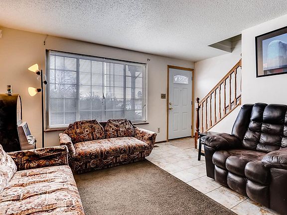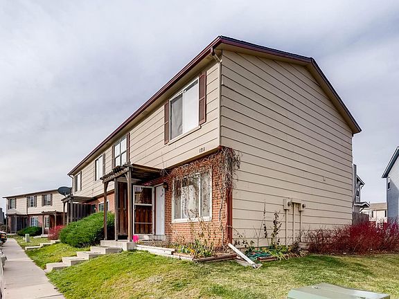 Great starter townhome with 2+ bedrooms, 1.5 baths. Nonconforming bedroom in basement. Large storage/laundry in basement, too. Appreciate the new kitchen cabinets, stainless steel appliances, and tile floor. Fenced patio and yard at back. Off street parking in front. Quiet neighborhood. Convenient location near Fitzsimons, DIA, Buckley, mass transit. Check out the video tour.
