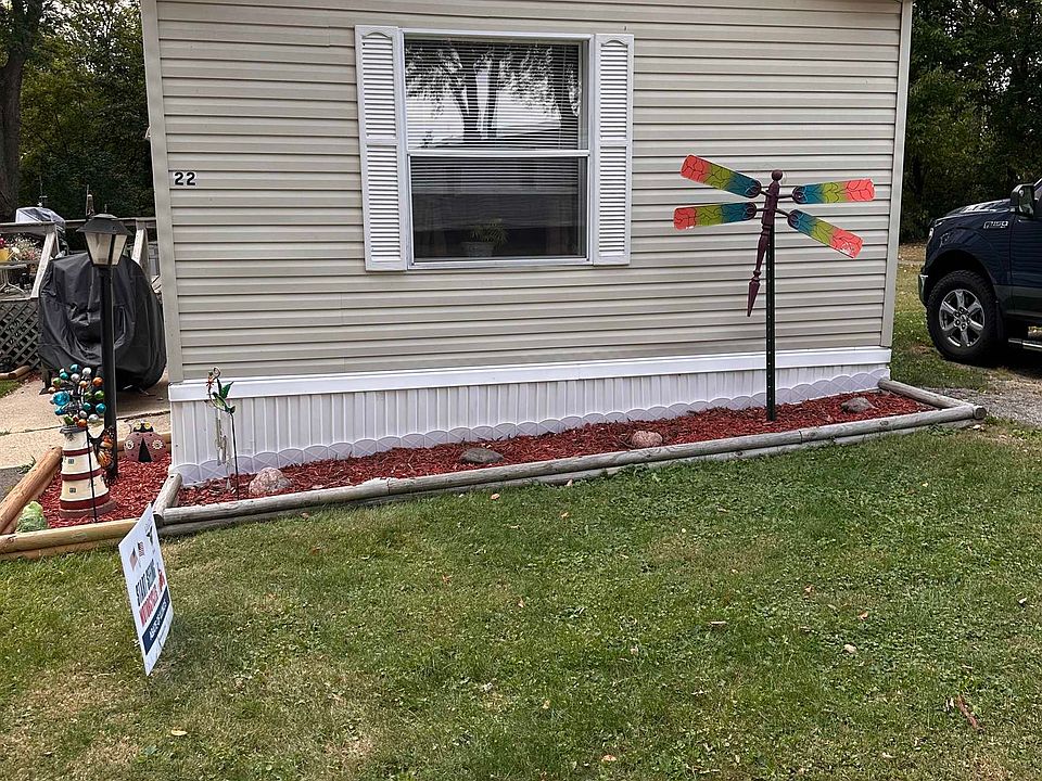 This is a well-maintained mobile home. Walk into the open concept with vaulted ceilings. The living room is spacious with outdoor cross winds to keep you naturally comfortable. There is an eat in kitchen. Down the hall to the bathroom is a laundry area. The master bedroom hosts a lighted walk-in closet with a master bath. It's a Schult measuring 72' x 16' with the 2 bedroom, 2 bath split unit. Relax on the 12' x 10' deck. Updates include 2025 - awning, kitchen faucet, back steps, 2024 - A/C capacitor, roof, ceiling painted, laminate, carpet, ceiling lights, floor registers, 2023 - furnace blower motor, fan hood, 2020 - furnace coupler, and much more. Hall bath is updated. Lot rent is $330.00 a month and $10.00 each additional person. Buyers must be approved by Knollwood Estates Mobile Home Park Managment.