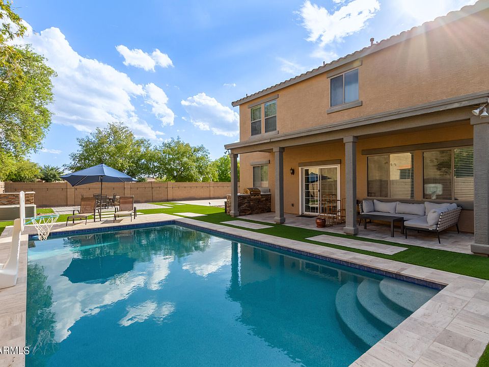 Welcome home to one of Gilbert's highly sought after neighborhoods, Lyon's Gate. This home comes complete with 4 bedrooms, 2.5 bathrooms, and is perfectly situated on a large corner lot with a sport court and outdoor fire pit, directly across from a lush grass open area park. NEW pool added in October of 2019. Amazing location minutes away from loop 202, The Epicenter, San Tan Valley mall, shops, dining, and so much more!