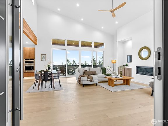 Welcome to this amazing 3/4 Bedroom, 3 bath home. Primary on the main floor with amazing views, walk in closet. Offering a spa like feeling with a large walk in shower, glass barn shower door, large soaking tub and spacious vanity with 2 sinks. As you enter/walk into the 13' vaulted ceiling opening up to double sliding glass door to the 12' covered deck with 180 deg views of Whatcom County. Large open kitchen with spacious island with the cook top, double frig/frez, double oven all stainless steel appliances. Over sized 2 car garage set up with 50 amp and 30 amp 240 plugs, pre-plumbed with a NG gas stub to offer a heated garage in the future. Home has a 320 service. Lower En-suite down stairs. Lower family room with Wet Bar. Lower deck.