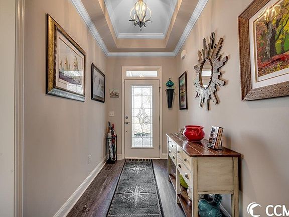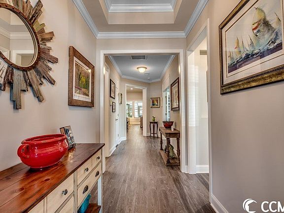 Come see this beautifully updated and well-appointed 4 bedroom, 3 bath home in Cresswind, the active adult community in the highly desirable Market Common section of Myrtle Beach! Built in 2018, this home features approximately 2526 heated sqft with 3 bedrooms, 2 baths (2077sqft) on the main level and an additional 1 bedroom, 1 bath on the 2nd floor (448 sqft). Beautiful entry from the covered front porch into the foyer with a tray ceiling. Luxury vinyl flooring is through the foyer, hallway, kitchen, dining area and family room.  Bedrooms have carpet while bathrooms and laundry room have tile. The upgraded kitchen boasts tons of granite countertops, large island with an undermount sink, backsplash, ample cabinets & drawers, 9 recessed lights and a large walk-in pantry. The upgraded GE stainless appliance package includes a 5-burner gas stove, microwave over stove, dishwasher, wall oven, and refrigerator. Sellers have upgraded/added light fixtures throughout including the dining room hanging light, alcove lighting and the art spot light over the back door. The dining and family rooms have 11’ smooth ceilings. Family room has a floor outlet for convenient furniture placement, ceiling fan and 4 recessed lights.  All bedrooms have ceiling fans with lights. The owners suite features a tray ceiling, view to the backyard, double vanity, large walk-in tiled shower with glass surround, private water closet, linen closet, and a huge walk-in closet. Also on the main level is a beautiful laundry room with all new cabinetry, shelving, granite countertops, tile backsplash, sink and side-by-side washer & dryer.  Upstairs has a large 13’9 x 17’10 bedroom, big walk-in closet and a full bathroom with a tub/shower combo that is tiled to the ceiling.  Bedroom closet has easy, no-stair access to attic storage. Other features of this home are the attached 2 car garage with mud sink, tankless Rinnai water heater, hurricane shutter ready system, low-e windows, security system, and Hardi plank siding.  3 mounted TV’s will convey along with all appliances. Enjoy the 25’x10’ 3 season room with EZ Breeze windows, an added mini-split system with both heat and air, 2 new ceiling fans with lights, new shades, and new LVP flooring.  Just off the 3 season room is an extended 6’8x5’4 paver patio looking out to the tree-lined backyard.  Irrigation system all around the yard. Experience the Cresswind world-class amenities:  12,000sf Amenity Center offering a Fitness Center, Library, pool table/poker room, yoga room, kitchen, social room, and more. Other amenities include outdoor pool, tennis courts, pickleball courts, bocce ball courts, horse shoe pit, amphitheater, walking trails, and outdoor grill area/patio. Cresswind is close to the public beach as well as the oceanfront Myrtle Beach State Park. The HOA fee includes all these amenities, lawn maintenance, lawn irrigation, basic cable through HTC, and security monitoring. Cresswind is a short walk or a quick golf cart ride to the many areas of entertainment, shopping and restaurants in Market Common and other nearby Myrtle Beach areas. Come see this amazing home and subdivision today!