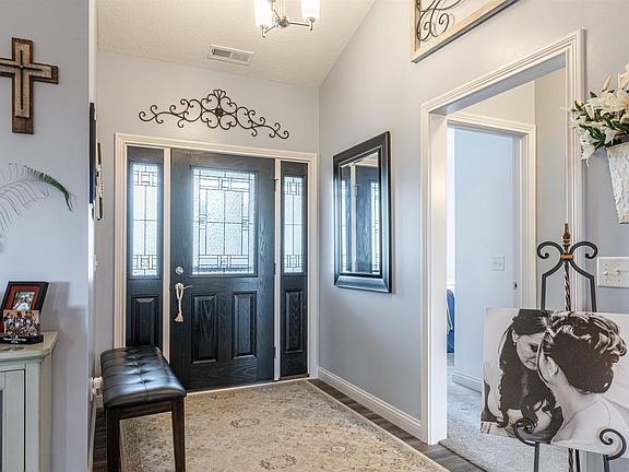 Better Than NEW Construction-Pride Of Ownership Found In This Custom Build. Split 3 Bed 3 Bath Open-Concept Ranch w/Serene Water View, Fenced In Backyard and 16x11Covered Patio w/ Additional 16x10 Patio Slab! Built w/ Pride By Majestic Homes, The Nora III Features Quartz Counter Tops, Large Pantry, Staggered Custom Cabinets w/ Crown Molding,Tiled Backsplash, Frigidaire Gallery Stainless Steel Appliances Included, Breakfast Bar, 24 x 12 Ceramic Tile Floors, Vaulted LR Ceiling w/ Gas Log Fireplace. This Home Is Built w/ AnEngineered Open-Web Truss System (*squeak-free), HE Low-E Simonton windows, HE Thermatru doors, HE 50gal hot water heater, HE furnace & HVAC w/ Return Vents In Each Room(maximizes efficiency), Spray Foam And Batt Insulation All Exterior Walls. Front And Back Yard Sod And Extensively Landscaped. Home Features A Split Plan Concept With A FabulousMaster Bedroom Featuring A Window Seat To Enjoy The View, Tile Walk In Shower, and A Huge Walk Through Master Closet! Must See To Appreciate This One Of A Kind Home! BuilderWarranty Transferrable!