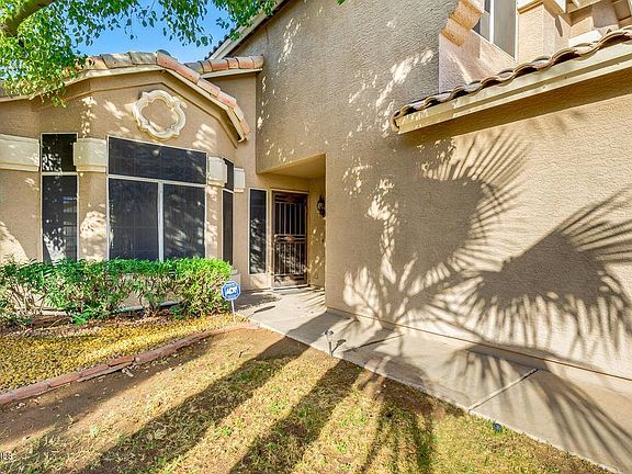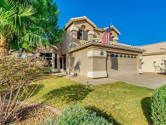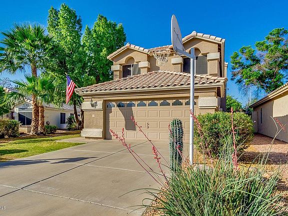 Hurry and see this stunning 4 bed, 3 bath property now for sale in Chandler! This lavish home boasts grassy landscaping, 2 car garage, vaulted ceilings, formal dining and living areas, a cozy fireplace, bay windows, and designer paint. The elegant kitchen is equipped with ample cabinet and counter space, a pantry, recessed lighting, matching stainless steel appliances, and a lovely breakfast bar. Inside the grandiose master bedroom you will finds a full bath with his and her sinks, separate tub and shower, and a spacious walk-in closet. The lush backyard includes a covered patio, a convenient storage shed, and a refreshing fenced pool perfect for the summer! Located in a fantastic community, this home truly has it all! Schedule a showing today!