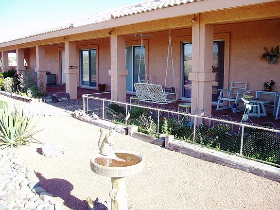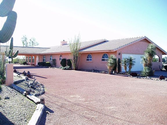 Beautiful well maintained home on hilltop with 5.67 acres of land surrounding it. Very light and spacious with awesome views of Vulture Peak and golf course to the south. Valulted cellings, and fireplace make this a wonderful inviting home. Covered patio along south side with doors to each bedroom. Nicely landscaped with two bridges inback yeard and circular paved drive way that pulls under portico in front. R-35 zoning so property could be split.