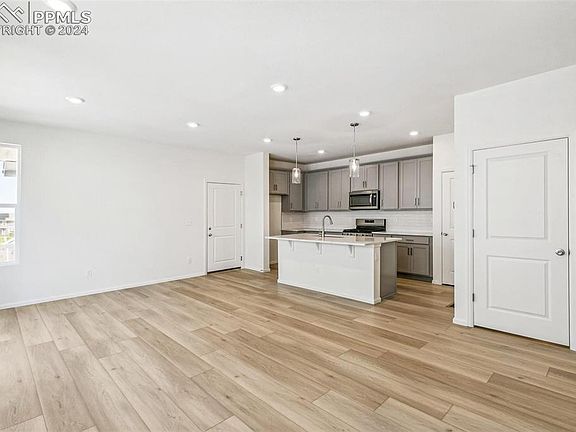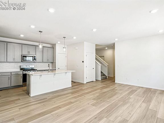 This two-story paired home features open concept living, located in an awesome new home community. Enjoy 17 acres of park and open space - 4 miles of walking trails, tennis, pickleball courts, soccer, lacrosse field, baseball diamond, 9-hole disc golf course, kids' playground and a swimming pool. 9ft first floor ceiling adds the spaciousness of this lovely home. The entire home is flooded with tons of natural light on both floors. An oversized kitchen has plenty of cabinet space and counter tops to prepare that perfect dinner, while staying in view and conversations with your family or entertaining. The main floor bedroom with a complete full bath across the hallway makes it a great addition as a guest bedroom or a quiet cozy library or office space. Upstairs where you have a loft for flex space - make it a play room or another family area, along with 2 secondary bedrooms with a guest bathroom in between and your primary bedroom with an ensuite bathroom. The unfinished basement gives an immense amount of living space where one can exercise one's imagination to make it into a media room or whatever that strikes one's fancy. This is a great home for the budget conscious, giving you everything you need for your family and plenty of room to grow in. Come home to Trails at Crowfoot Villas.