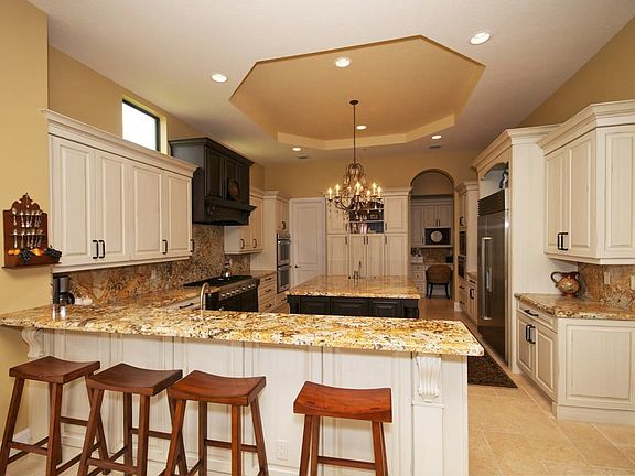 Breathtaking water views surround this exquisite estate home on a private oversized cul-de-sac lot. Gas fireplace and wet bar with walk-in wine cellar ad to the entertainment area. Home theater, game room with bar, office with built-in wood panels, elevator, Jerusalem Stone and hardwood floors, upstairs and downstairs laundry rooms, outdoor built-in barbecue are with oversized pool. Master bedroom includes a sitting area, and his and hers ensuite with claw tub and large walk-in closets. Community includes resort style pool and multiple tennis courts with pro shop. Clubhouse with full size gym and card rooms plus dining room.