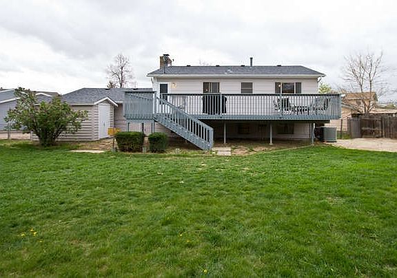 This beautiful 4 bedroom, 2 bathroom home has been priced to sell! Entertain family and friends in your large kitchen with stainless steel appliances, trendy painted cabinets, backsplash and newer flooring. The family room, right off the kitchen, is a great place to relax or watch the big game. The many windows throughout the home flood with natural light. Retreat downstairs to an additional living room and cozy up by the fireplace. Step out to the outdoor deck and massive fenced backyard to enjoy the Colorado sunshine...one of the largest lots in the neighborhood! Newer roof installed for an easy upkeep. This house awaits further customization by its new owner. This home is located in a cul-de-sac within a great neighborhood: the area features Highland Hollows Park and Aurora Highlands Shopping Center just minutes away. This is a perfect place to call home!