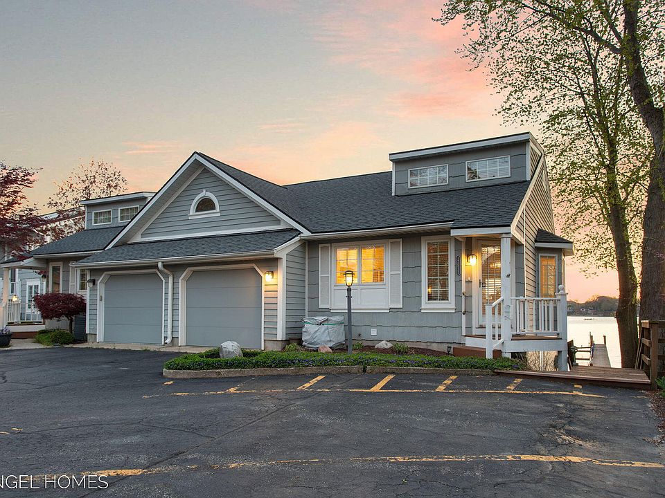 Welcome to 17513 N Fruitport Rd, Spring Lake, MI! This stunning waterfront condo is in the perfect location, situated across from the Spring Lake Country Club! This condo offers TWO docks, beautiful lake views and a gorgeous updated interior. Upon entering, you are welcomed by newly installed luxury vinyl plank flooring, neutral paint tones, and a spiraling staircase that leads to a loft area. The kitchen has been newly renovated with white cabinetry, subway tile backsplash, and stainless steel appliances. The living room showcases slider doors that provide lake views and access to the large deck. The main level also features the primary bedroom with an attached ensuite that has also been recently remodeled with a tiled stand up shower, neutral paint tones and large vanity. Heading to the fully finished lower level you are welcomed by a secondary living area with walkout access to the back patio. This level also features 2 bedrooms, wet bar, a second full bathroom, and the laundry area. You don't want to miss out on this beautiful opportunity to live on Spring Lake! Call us today to schedule your private showing!
