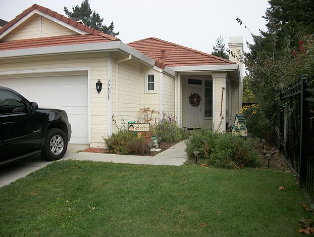 : Wonderful home on quiet tree lined street in Las Palmas I. Very nice condition. Living room/dining room with fireplace and vaulted ceilings. Bright kitchen with upgraded counters and cabinets. Large master bedroom with French doors that open to a small, fenced backyard. Double car garage; no opener. Access to community park.