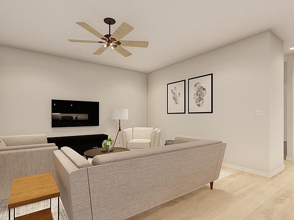 • Features: Wall/Wall Carpeting, Window Covering, 9'+ Ceiling, Ceiling Fan(s), Walk-In Closet(s)