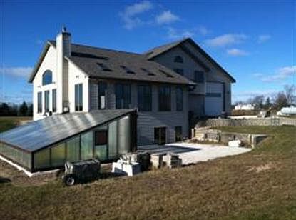 Lake Home on 6 acres, Beach frontage/access, lots of natural sunlight thru out, Master bedroom w/private bath, fireplace and private deck overlooking lake, Huge rustic stone fireplace, Skylights, sun-pit greenhouse with acid stained concrete and hand painted murals, 3 fireplaces, RV and Boat garage garage w/3(could fit many cars) 14Ft.doors. Located a stroll thru a nature preserve is a park and boat launch the land has a mowed walkway to park.