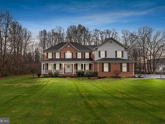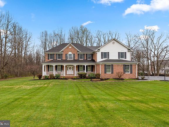 Ashton all brick Custom Classic Colonial with over 5,000 sq. ft. of finished space in sought after Springlawn Farm situated on 3 & 3/4 private, wooded cul de sac lot. Expansive front porch entry into two story foyer flanked by living room and separate dining room. Open kitchen and family room gathering space with breakfast bar, new stainless appliances, granite, huge walk-in pantry, sliding glass door to composite deck and gas masonry fireplace with mantle. Polished hardwood flooring throughout main level, stairs and upper level hallway. Main level also includes bright sunroom, powder room with pedestal sink, and entry to three car oversized, side entry garage and expanded asphalt driveway. Plenty of room for guests and parking for parties. Upper level has four good sized bedrooms and a huge owners suite with dual walk-in closets, dual vanities, soaking tub and separate shower. The laundry room is conveniently located on the upper level. This level is completed with two additional full baths. The lower level of this home is filled with natural light from the two French doors leading to the wooded lot, and features loads of finished space, a wood burning fireplace, a legal bedroom, full bath, wiring for an additional kitchen and wiring for an additional laundry hook up.. The flooring is easy care laminate & carpeting. Original owners have lovingly maintained the home and have added additional attic insulation (R42), replaced the dual zone HVAC systems (2017 and 2022), painted, refreshed landscaping and recently sealed driveway, Open House Sunday, April 10th, 1 to 4:00 pm. A wonderful place to call Home!