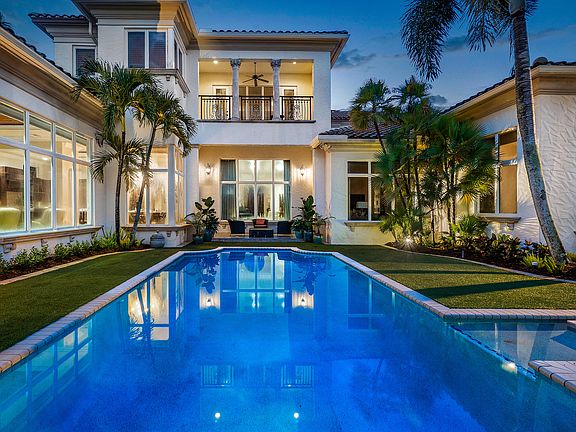 17519 Foxborough Lane is one of the most grand estates within Boca Raton's most prominent golf and country club communities of St. Andrews. Idyllically located within close proximity to the world class amenities that St. Andrews has to offer, this 5 bedroom and 6 and a half bath estate is positioned green side of one of St. Andrew's two renowned golf courses. Built in 2007, there was absolutely no expense spared in the design and construction of this spacious residence. With over 6,660 sq ft of living space, 17519 Foxborough Lane adequately satisfies the desire to have space to entertain and live comfortably with vaulted coffered ceilings and an open living concept. Upon entry, you are greeted with an impressive sitting area with massive floor to ceiling impact windows flooding the space with natural light over looking the par 3 and your private pool and spa. The kitchen was masterfully designed to not only a chef's standards but also with the intention to be a space for entertaining. With a gas cooktop, dual ovens, a Sub-zero refrigerator, Thermador convection oven and microwave, a Miele coffee maker and dual islands, this kitchen leaves no box unchecked.