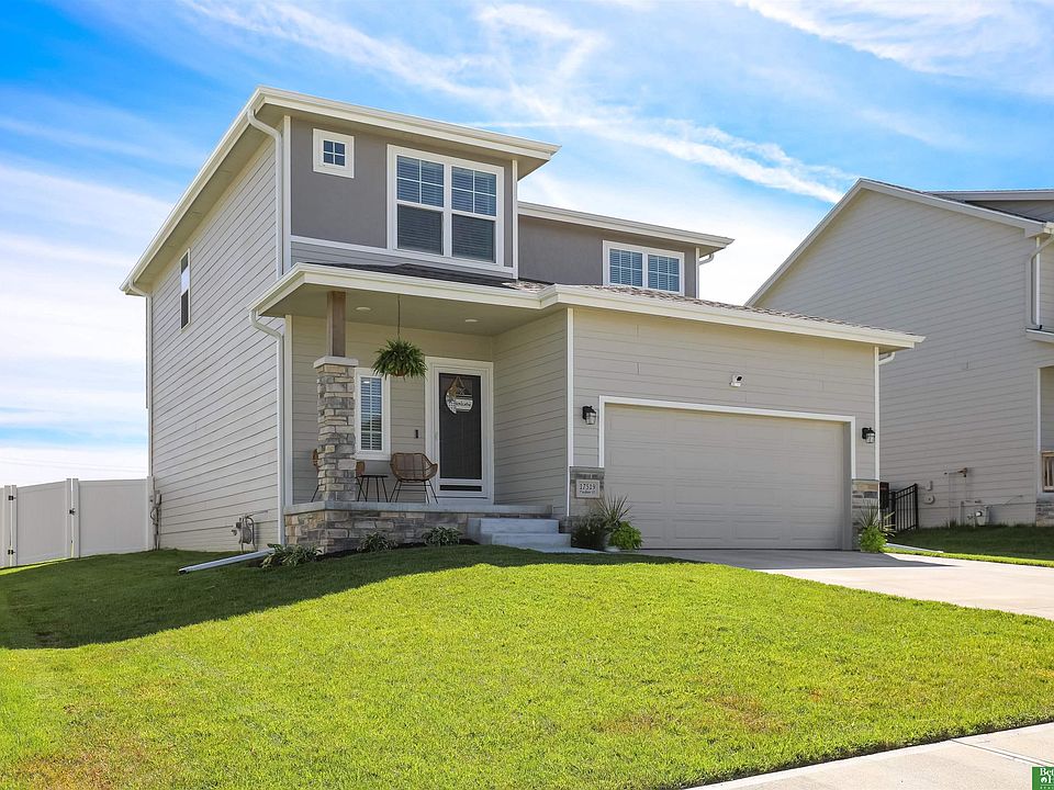 Welcome to this darling two story home in Elkhorn Public Schools. Step through the front door into the beautiful entry, complete with a new drop-zone. You'll love the bright light the large windows in the family room and kitchen provide the main level. The open concept provides ample space for entertaining. As we head into the fall and winter months, you'll want to cozy up in front of the beautiful ship-lapped fireplace. The lovely kitchen is perfect for all your entertaining needs. Step out into the spacious, fenced backyard which offers plenty of privacy. Upstairs you'll find a wonderful primary suite with a large bathroom and walk in closet. Additionally, there are two nice bedrooms and a full bathroom. Sellers relocation is your ticket to a great, newer home. Why wait to build when this home is sure to check all the boxes?