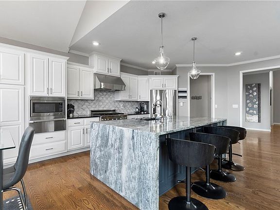 Hurry to see this stunning and beautiful home with amazing updates, better than new build! At over 5,200 sq ft one of the largest homes in the Estates of Parkhurst. 1.5 story with primary bedroom on main level. 5 bedrooms (5th is located in the lower level), 4 1/2 bath FULLY remodeled open floorplan. Walking distance to everything... Lenexa City Center, Shawnee Mission Park, Lenexa Hills Elementary, Lenexa Rec Center, Shawnee Mission Aquatics Center and Canyon Farms Golf Club. Main floor includes office, formal dining room, chef's kitchen with large waterfall island open to living area, and new hardwood floors. Primary suite with luxurious bathroom also on main level. Three oversized bedrooms, updated bathrooms and attic storage on second floor. Amazing 1,600 sq ft basement finished in 2019! Entertainers dream with huge island bar, 10 foot projector screen, in-wall speakers, marble bath with zero entry shower, wine room, bedroom with large walk-in closet, and luxury vinyl plank flooring throughout. Spacious back yard surrounded by black metal fence. Composite deck and large patio for outdoor entertaining. New roof in 2018 and HVAC in 2019. $35K IN NEW THERMAL KING TRIPLE PANE WINDOWS INSTALLED MARCH 2024!