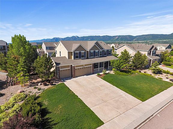 Stunning family home on almost a third of an acre with Pikes Peak views. This Village Center at Woodmoor home boasts 6 bedrooms, 4 bathrooms, 3 car garage, dedicated home office, formal living room, family room, formal dining room, gourmet kitchen, second family room, & bonus kitchenette. Oversized master suite features a glorious 11x9 closet & 5 pc master bath including double vanity, oversized soaking tub with chandelier, spacious shower, and water closet. Perfect location for an easy commute to the Springs or Denver! Gourmet kitchen features cherry cabinetry, a large island, gas cook-top, double ovens, microwave oven, stainless appliances, oversized kitchen sink, undermount lighting, spacious pantry, & solid surface countertops. The inviting family room boasts soaring 2-story ceilings, a beautiful gas fireplace w/built-ins, & a wall of windows that flood the home with Colorado sunshine!