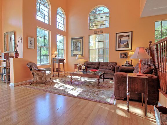 Bonus $2000 towards closing costs! Enjoy beautiful living space inside and outside of this spacious and elegant home. 4 bedroom plus den plus office, 4 full baths & 3 car garage. Enter this home into the 2 story foyer and formal living room with floor to ceiling arched windows. Gourmet kitchen features large center island, stainless appliances, double oven, walk-in pantry and large dining area that overlooks lushly landscaped back yard. This home also has family room off of the kitchen. Den downstairs currently being used as a guest room. There are also 2 full baths downstairs (one is a cabana bath off of patio). Enjoy beautiful lake and golf view from topical and private, fenced backyard. Covered patio and outdoor kitchen that are great for entertaining. Retractable awning.