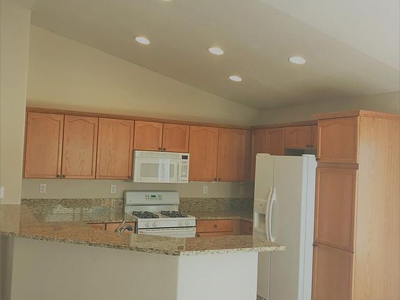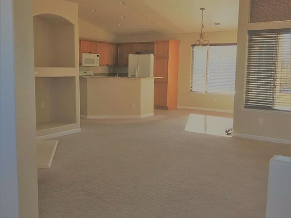 3 Bedrooms, 2 Bathrooms, 2 Car Garage Rent $1,795, Deposit $1,785. 1,261 sq. ft. Includes fridge, W/D, D/W, microwave, fireplace, A/C and double pane windows. One pet 40 lbs. or less upon approval with an additional deposit of $500. This beautiful single-story stucco home was built in 2005, is in the very desirable South Meadows area of Double Diamond in Reno, shows extremely well and has brand new 2-tone paint with a designer color on the walls offset by white baseboards. The first thing that you see is the great curb appeal. Once inside you will find an open floor plan with the kitchen and its granite slab counter tops with granite slab back splash, breakfast bar, pantry and high ceiling merging as one with the large great room with its ornamental gas log fireplace, entertainment nook and high ceilings. The master bedroom is large, also has a high ceiling, a ceiling fan and a slider to the back patio. Along with the master bedroom is a master bathroom with a raised vanity and a tub/shower set-up. Other features include separation of the master bedroom from the 2 secondary bedrooms and an extremely quiet and peaceful setting given that the property is on a very small semi-circle with very few homes on it and no drive-through traffic. The backyard has a great deal of privacy, landscaping that is absolutely stunning, a raised garden bed, a large patio with a cement walkway down one complete side of the house to the side gate, a custom shed plus fabulous views of both the Virginia range to the east and Mt. Rose and the Sierras to the west. As for location you are within walking distance of Center Creek Park with its playground, large grass field for soccer or football, basketball hoops, walking paths that connect to multiple parks in the area and some of the best mountain views in all of Reno/Sparks. Last but not least is the fact that you are close to great schools, the Summit Reno plus lots of other shopping, restaurants, a luxury movie theater, the Southeast Connector, Virginia City, Mt. Rose Ski Resort plus Lake Tahoe while still being just minutes from Reno via 395. Owner provides partial landscape care. Tenant pays G, E, W, T & S. 1 year lease.