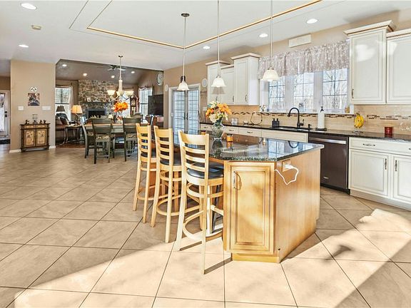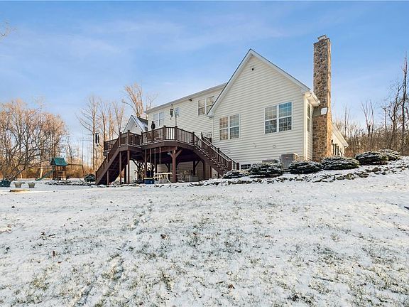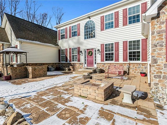 A private lane and driveway in peaceful Bridgeton Township is the setting for this lovingly cared for colonial. Surrounded by more than 10 acres of mature woodland, Estate at Ringing Rocks offers modern conveniences in a quiet rural setting that is still close to everyday necessities. The home also features a generator for peace of mind during power outages. Entrance to the home begins with a wide courtyard that serves as an outdoor kitchen as well as an area for eating or just relaxing in the afternoon sun. Inside, soaring ceilings and wood floors are complemented by abundant windows. A private office and formal dining room in the front of the house flow easily into the large kitchen. Outfitted with abundant storage and prep space, stainless appliances, and a coffee nook, there is room for a table that looks out over the Trex deck and wide expanse of lawn beyond. A living room with vaulted ceiling and gas fireplace serves as a cozy family area, adjacent to the first floor laundry and with easy access to the 3 car garage and driveway. Those looking for single floor living will delight in the expansive primary suite. With a sitting room, fireplace, and multiple closets, the luxurious en suite bath includes a clawfoot soaking tub. Upstairs, four large bedrooms share an updated hall bath. The walkout lower level includes a second laundry room, finished bath, and lots of potential.