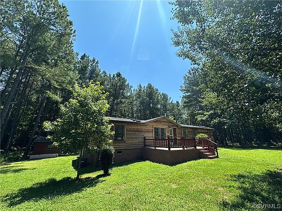 Located only 15 minutes from Lake Gaston's public boat launch in La Crosse, VA, this property is priced to sell. Upon arriving at the house you are greeted by a large, gated 12'x20' front porch that overlooks the meticulously kept property. This spacious 1,680 square foot home has 3 bedrooms with 2 full baths. This log cabin sits on 3.2 pristine and well-managed acres and comes with a 12'x24' storage shed with electricity for all your home projects. Finally, the property includes a huge 12'x58' treated back deck. The property is serviced by a well and septic which have both been recently inspected. Renovations within the last few months, including a new roof with vents, numerous skylights which add to the already ample natural lighting, new flooring and tiles, new paint (inside and out), a new well pump with pipes, and new front and rear doors. Property is being sold As-Is.