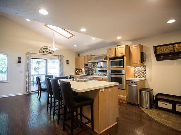 This bright and beautifully finished bungalow offers many features not found in other homes in the area! The carefully maintained exterior and landscaped yard creates exceptional curb appeal and there is much more to love on the inside. An addition was put on the house in 2007, creating a spacious eat-in kitchen with high-end stainless steel appliances, including a 6 burner Thermador gas range, built in Thermador convection oven, indoor Jenn-Air counter-top grill, and Rangemaster hood. The breakfast bar opens to the family room with vaulted ceilings, skylights, recessed lighting, a marble (gas) fireplace, and sliding glass doors that lead to the large fenced in yard with an incredible deck and patio for entertaining family and friends. The first floor also offers a full bathroom, 2 spacious first floor bedrooms, and hardwood floors throughout. Upstairs is the huge master suite featuring an en-suite bathroom with double sinks, a walk-in shower with a steam unit, a large closet, as well as huge 12' x 8' walk-in closet with built-in dressers and shelving! The lower level offers a finished rec. space with a bar and glass block windows, plus the unfinished portion provides a utility sink, laundry area, and space for storage and utilities. This home is 100% move-in ready with so many updates in 2007 including the A/C, kitchen/family room addition, windows, deck, patio, landscaping, and more. Don't miss it!