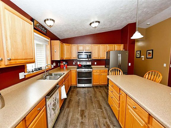 Breathtaking view and nestled on over half an acre of land, this beautiful custom-built ranch style home with a walk out basement is a rare find. It is conveniently located in a sought-after neighborhood with easy access to the bypass. When you enter the home you will walk into an open floor with a large kitchen containing lots of storage, pantry and a GAS STOVE! The main floor also consists of a large living room, dining room, full bath with his and her vanity and 2 great sized bedrooms. The downstairs has a large laundry room/storage room, beautiful family room with a bar, walkout basement and 2 more bedrooms. You will also enjoy the 3-car heated garage with a floor drain and an extra parking pad. The house also has a water softener and humidifier. DON'T MISS THIS ONE!