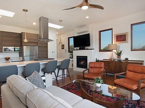 Brand new build - Super warm and inviting open concept, furnished, 1 bath/1 bed apartment in Cardiff. Fantastic location just east of I-5, close to Cardiff State Beach, schools, parks, post office, restaurants, Seaside Market, shopping, farmers market & downtown Encinitas. Ground level has a private entry way, washer/dryer, storage & outdoor shower the upper level is the main living area. The upper living areas are Kitchen with all stainless appliances, deep stainless sink, quartzite kitchen countertops, built in floor heat, contemporary cabinets, 4 bar stools, pantry and all kitchen ware. Living Room, surround sound, natural gas fireplace, flat screen smart TV, sleeper sofa (pulls out to a queen), mid century coffee table, leather accent chairs, Persian rug, vintage credenza and special office nook area with desk (the stool in photo being replaced with a Knoll office chair), mid century art, clocks and lamp accent the space. The Mahogany casement windows are situated when open to capture the wonderful ocean breezes. The triple sliding patio door and skylights bring in a lot of natural light. The triple slider folds from 3 panels down to 1 making the transition from indoor to out almost seamless. The outdoor deck looks out onto lush greenery, includes a Mid Century Patio set with ottoman and natural gas stainless Weber BBQ. Bedroom has a custom built walnut bed frame with 6 deep dresser drawers on each side, luxurious Casper "Wave" hybrid mattress, Peruvian Pima cotton linens, deep & tall closet with mirrored doors, flat screen smart TV and decorative storage wall cut outs above pillows. Bathroom, dual sinks, Mid Century shower tile, shower wall cut outs for storage, Teak cabinets, built in floor heat and luxurious standard textile bathroom linens. This apartment is private from the attached main house. Parking is on the street with private entrance. AC/natural gas heat. 6 month minimum. Application & credit check. No pets allowed please do not apply if you have a pet. Tenant Pays Gas, Internet/Cable. All other utilities are included. No smoking. 1 year lease
