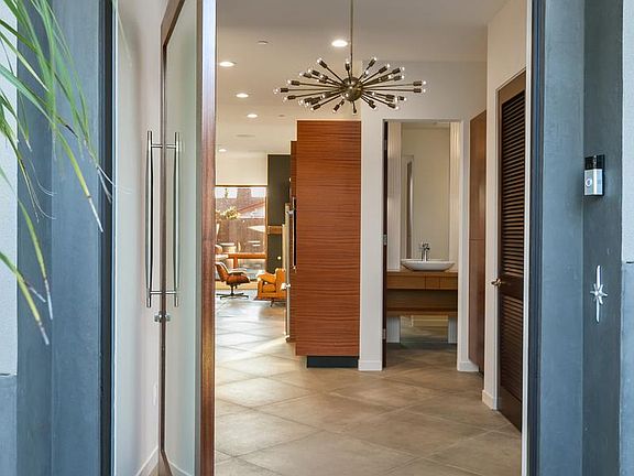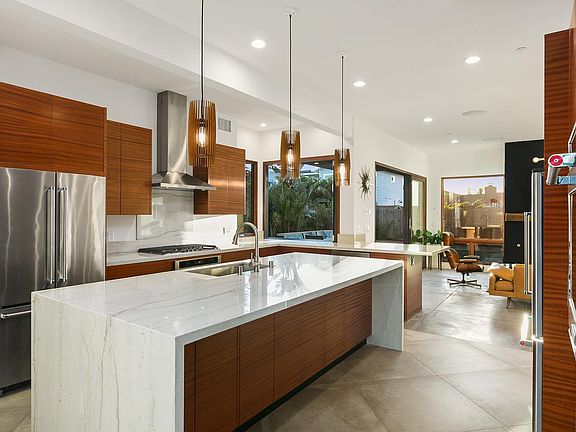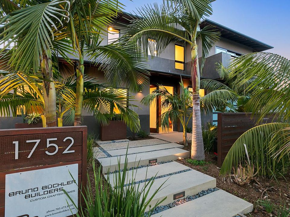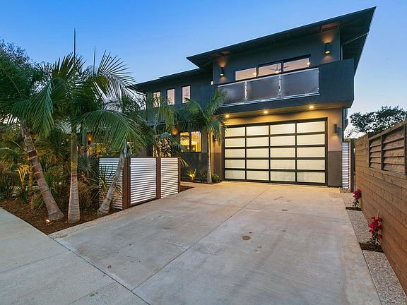 Gorgeous light and bright 2750 sq ft. 5 bed + media room 5.5 bath custom home offering amazing indoor/outdoor living and Saltwater Pool/Spa. Pivoting front door leads you through the entry into the large kitchen with 10 ft ceilings, Quartzite countertops with sizeable island, Sapele Wood Cabinets and high-end stainless appliances. Dual dishwashers, refrigerators and ovens allow enough cooking and cleaning power for a large family or entertaining. Kitchen leads into a large living room area flanked by a gas Fireplace and 8 ft tall 12 ft wide 3 panel multi-slide glass patio door & bi-fold kitchen window. The paneled door can be moved from left to right and can slide down from 3 panels to one, seamlessly transitioning to the great areas outdoors. Outdoor kitchen with dining areas, 2 gas firepits, gas/electric heaters in dining area ceiling, Bocce ball court and outdoor surfer shower. Media room off living room has its own on suite bath and includes the same multi slide patio door as living room and is a great space to have a home office or fitness room. At the other end of the lower level, you'll find 3 bedrooms, 2 of which have patio doors leading to their own patios and both have an on-suite bath. Transition upstairs to the large master suite with beautiful Sapele floors, 2 walk in closets, washer/dryer closet, entertainment nook, massive patio door leading to an expansive deck with built in electric/gas heaters in ceiling, gas fireplace and on-suite bath with standalone tub and custom shower. The upper level also has a 2ndbedroom with its own on suite bath and patio door leading out to a large outdoor desk. Ocean and sunset views from the 2ndfloor. TV's and built-in surround sound systems in living, outdoor, media and master bedroom areas. Floor heat in all but powder room and media rooms baths. Beautiful landscaping around the entire property with timed auto drip system and timed low voltage lighting in the evening. Property comes with full photovoltaic solar system getting the electric bill down to near zero. 2 car garage with 10.5 tall ceiling and electric car charger. Between the garage and kitchen is a large pantry that also includes a washer/dryer. AC and natural gas heating. Pet considered on a case by case basis. None of the furniture outdoor or in is included with the rental excluding the stereo cabinetry. Optional private 750 sq ft 1 bed/1bath beautifully furnished accessory unit can be included for an additional price. Tenant pays all utilities