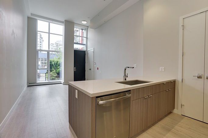 Address: 1752 Ontario Street, Vancouver Available: Now Bedrooms: 1 Bathrooms: 1 Finished area: 707 SqFt Levels: 1 Outdoor: Patio Heating: Hot Water Parking: 2 Deposits: Half month's rent Lease term: 1-year minimum Pets: Negotiable Absolutely no smoking, please. Included items: Fridge, stove, oven, microwave, dishwasher, washer, dryer. Not included: Furniture, internet, cable, utilities. Just steps from Canada Line & Expo Skytrain stations, bus lines, Aquabus & Seawall. Walking distance to Olympic Village's restaurants, cafe's, boutiques, and shops. FEATURES: Stylish living in this townhome at PROXIMITY. It features it's own private entrance, soaring 14' ceilings, huge W facing windows and excellent private outdoor living space. Gourmet kitchen, high-quality cabinetry, built-in wine rack, Caesar stone counters, Fisher Paykel fridge, gas stove, dishwasher, and full-size Bosch washer/dryer. Hardwood, flooring, and Spa-inspired bathroom. Amenities include communal garden plots, kids playground, gym, clubhouse and a fantastic view from Rooftop deck. 2 parking stalls.