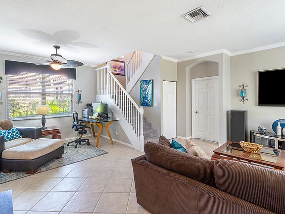 Come discover this rarely available fully furnished turnkey 3-bedroom, 2 and a half bath, 2-car garage plus den in the wonderful community of Wellington Lakes and within easy reach of Wellington's equestrian hotspots. This home offers inviting living spaces and features the primary bedroom and en-suite bath on the first floor with two additional bedrooms and an extra living room area upstairs. The kitchen is fully equipped and features a breakfast bar for casual dining. Enjoy a nice evening outdoors under the screened patio for relaxation and dining. Sauna conveys. Easy access to world-class equestrian venues and scenes while enjoying a peaceful retreat. Schedule a private viewing and make this wonderful property your new home!